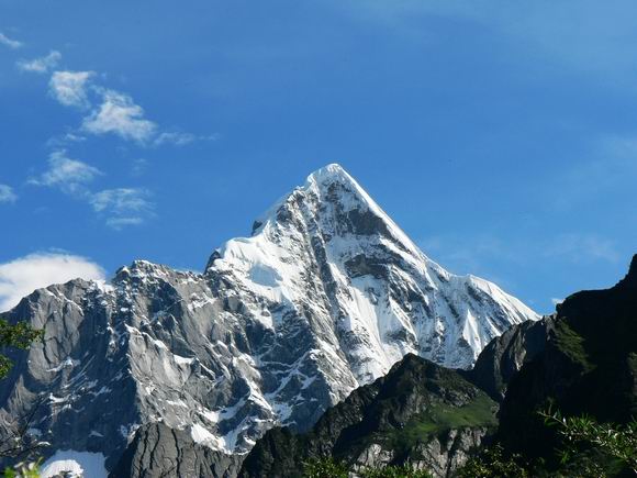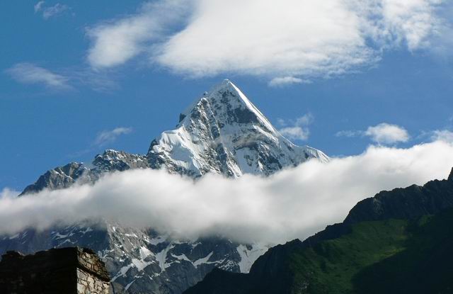 这张最好,三角形的构图方式,使画面最具有稳定性,白云围绕着山间,将四姑娘山温柔可爱的一面显现的淋漓尽致.