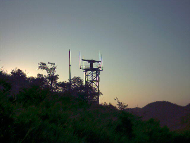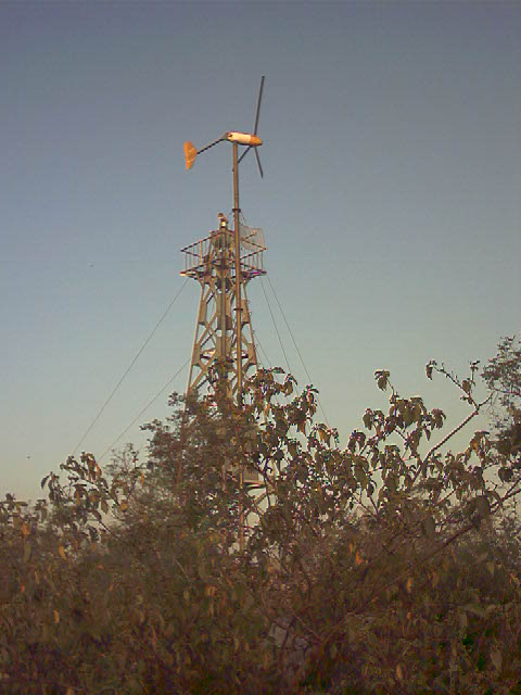 4.这就是果树园子上面位置的铁塔,看上面有摄像头,估计是防火用的! 这东西挺好,自给自足,塔的边上竖立个风力发电机,塔上还装了发射装置! 好啊!这样省得架线毁坏植被了! 估计还能省钱吧?