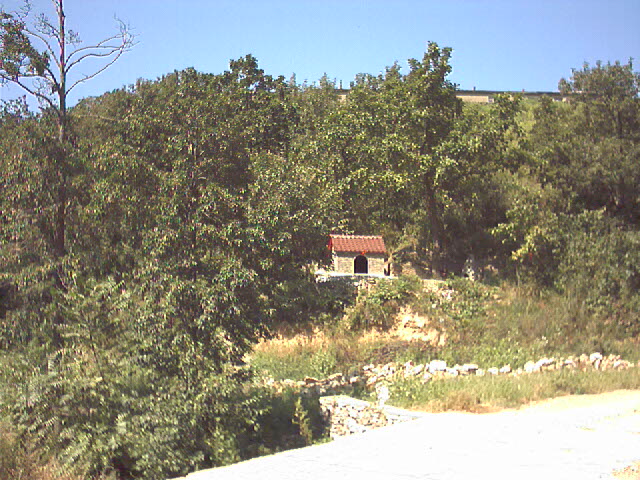 60.还行,山顶有毛毛小路! 可以沿着路走了! uW1jtdeN.jpg 61.又看到这个白塔! 已经近在咫尺了! 真想过去看看! 可是腿脚已经到极限了! 下次吧! vqyyfDg4.jpg 62.路越走越宽,已经开始可以走机动车了! 就是下山,腿更疼! 还不如上山呢! aR42f6Fq.jpg 63.终于下到有人家,有柏油路的地方了! 这是路边人家私建的小庙!