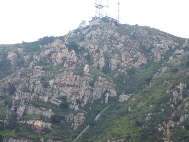 原来选择这个位置就餐——视野好! 后来放弃了——因为招风! 怕喝一肚子西北风回来! qv6Kimel.jpg 爬另一座电视发射塔山峰的栈道!不让游人进入!