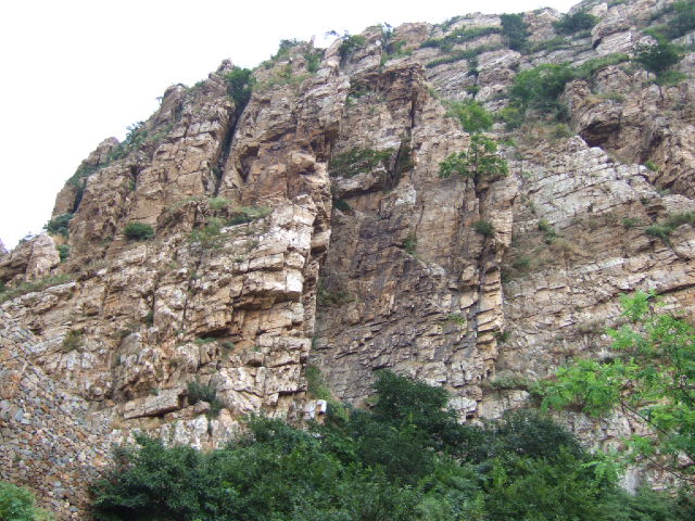 从上看扁水壶还是滴水壶的那个亭台,里面据说是军事化区! 不知道干什么的? xOIcJip0.jpg 这一段太像是张家界的景色了! wKtxMksp.jpg 大黑山的好景色就在这里——这里是大黑山的精华! 自然风光! N7t3SaV0.jpg 就是从这沟里面爬上来的! gzJquyE6.jpg 这个沟子里树个牌子说是军事化管区! hq4ujJje.jpg 石鼓寺—— 又名唐王殿,始建于隋唐时代,相传隋末唐初大将尉迟敬德所修。清代乾隆五十年,金州汉军正黄旗人鞠行金募化重修,后清嘉庆、道光和民国初年又多次修葺。自山脚下抵达唐王殿,南可从北关门寨口经十八盘攀援而上,北可从朝阳寺沿盘山路循径而至。寺内外名胜颇多,有大雄宝殿、弥勒殿、扳倒井、养病床、点将台、舍身崖、仙人桥、仙人台等。在石鼓寺的后面则是雄伟壮观的卑沙城,殿北的岭脊上是点将台。点将台正西,有一宽约数十米,高约上百米的悬崖,这就是“舍身崖”。石鼓寺不但人文景观荟萃,而且自然风貌独特。在此有相传久远的“三奇”。一奇是圆石头,二奇是不管山外的风多大,这里总是清风习习,三奇是这一带的山枣树成片,但树上长的刺却是顺着枝条。 以上为查的资料