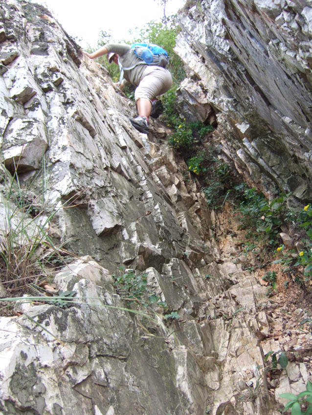 从主峰下山的路是很陡,如果有登山杖支撑会好走些,攀岩而下的路应该可以绕过吧?