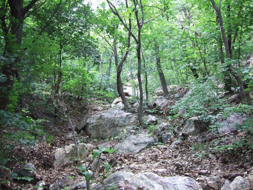 其实应该顺着这侧位置的小路下来,就不会有危险了! 总之,不建议一般游玩者走那个大石砬子,没个准头就骨碌下去了!