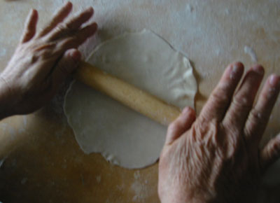 2,揪成适当大小后,用擀面杖均匀地摊开、擀薄 z78DliJm.jpg