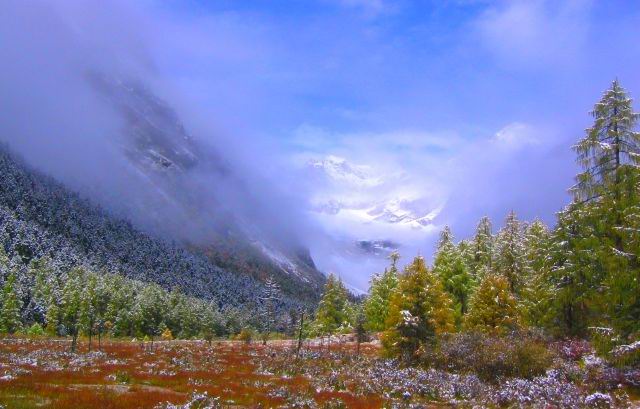 爬哑口是浓雾笼罩,爬上山后却欣赏到如此景色,幸运之极