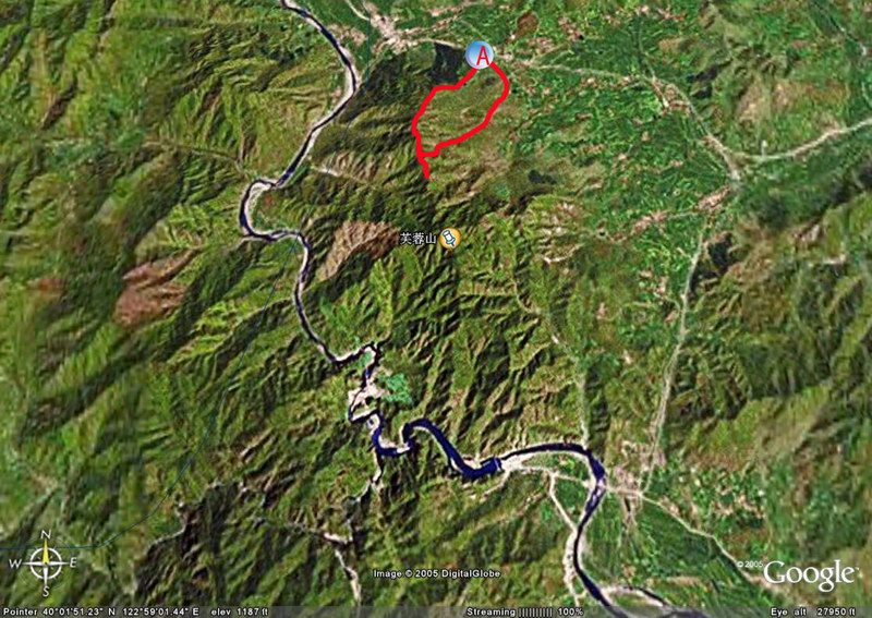 从芙蓉山南面上山,登顶后,从山西面下山(用时约34个小时,正好到冰峪北沟,在那里是个FB的好地方。