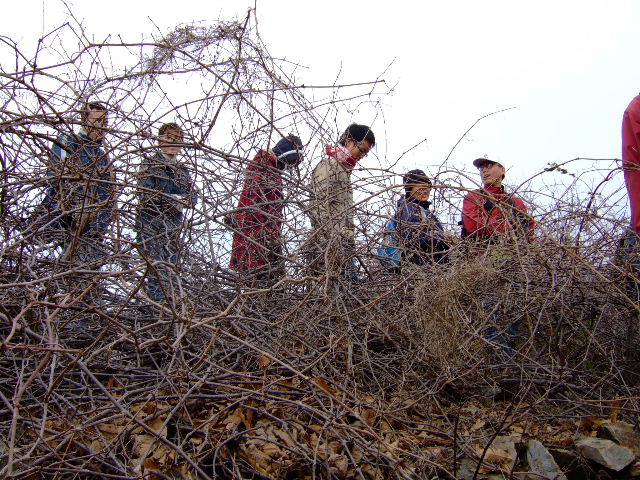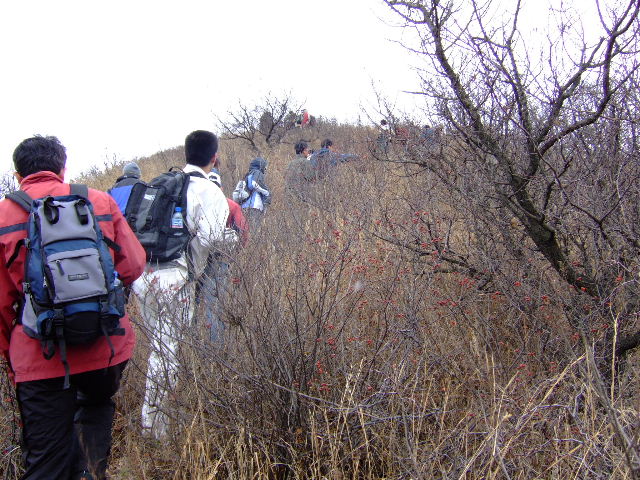 活动路线:鞍子岭上,岔安七队下(离棠梨沟还老远呢,要是穿山,估计现在还在路上呢!俺算计的不准啊,应该检讨!),然后步行旅顺中路至棠梨沟705站点 活动时间—— 9.40马栏子535出发 10.20鞍子岭登山开始 12.00金龙寺老座山山顶同穿越者论坛静石组织的正规穿越队伍汇合及午餐 12.30出发钻山 14.30岔安七队下山至旅顺中路 16.20步行至棠梨沟705路站点 16.40马栏子广场 活动内容——就是一个走啊,没有其他内容,比较枯燥!其中还有近两个小时的柏油路行程,比较考验耐力!活动强度算是比较适中!剩了六个同学在马栏子广场那喝了羊汤,简单fb了一下!中午同静石组织的正规穿越队伍汇合,大队人马人员累计达到38人,浩浩荡荡!不过,对于他们在山中中午开火,持保留意见! 总结——很抱歉此次活动组织的不是很有意思!即没看头(景色——山上一片破败景象),又没玩头(没附加一些游乐或者游戏之类的点缀,下次改进——让大家乐哈哈一路)!蛭?猩街写┰侥谌荩?行┩?У呐涫涡枰?⒁猓??话紫沽耍×硗猓?欢ㄒ?嘲??庋?艹浞终展税踩?矫妗??饕?悄馨涯愕男∈痔诔隼矗“巢慌伦橹?疃???掠幸馔馇榭觯?lt;br>以下内容给新驴看看——冬季已经来临,喜欢户外的同学,不必准备很多装备来应付这种活动的,千万不要成为户外装备的奴隶!户外装备得了银子了,除非你很有钱,不太在乎!冬季活动呢,只要注意我说的方面就成了,一个是鞋子,这个呢,应该奢侈一点,毕竟脚是你最该爱护的对象,成天的载着你到处流串,多辛苦!有一双合脚舒适的鞋子很关键!因为经常要在山内溜达,所以尽量还要考虑鞋子的防滑性和耐磨性能!再就是花个六、七十块搞套吸湿排汗的内衣比较有用,因为爬山或者徒步不可避免的会出汗!出汗呢,就会湿衣服,一旦风吹或者停留,你会感觉身上嗖嗖冷!不仅如此,还会坐病,至少你的身体不好,可能就会感冒!这种东西,虽然不能把你湿湿的表皮都能透干,但还是能起点作用的!其它的就无所谓了,衣服呢,找个不怕刮的,或者经刮的,或者坏了不心疼的……都行!总之,不要把要过年的新衣服拿去穿山上去!要是那样——彪了! 感谢大家的积极配合,使本次活动圆满结束!感谢杨先生提供的对讲(俺还给弄坏了一个,实在抱歉)!谢谢各位吸烟爱好者没在山林内吸烟!也谢谢各位男生对女生的照顾!希望大家有机会再聚! 剩下的大家补充吧!其实这里也就没人来补充了! 下周如果有时间的话——活动估计会是走金石滩滨海路西段(海水浴场沿海边至董家沟)