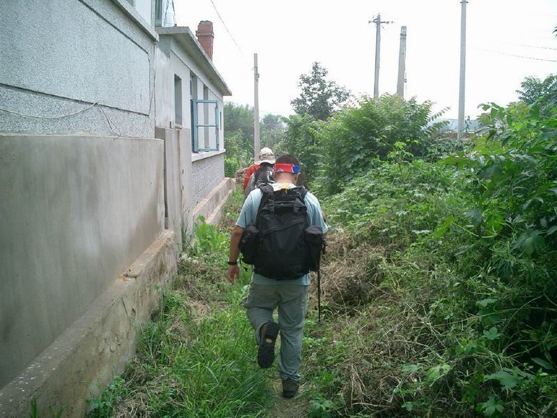 8点49分,合影之后,我们飞得更高队正式出发了,我们的首点是27点,按照方向,要穿过农家的房子,我们向北沿着斜坡刚上去,农家的小狗就不停的狂叫,幸亏农家大嫂出来看着它,不然还没找到点,就先被狗咬一口多不划算呐。