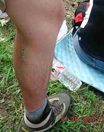 地图上标明过了大坝不远有一段机耕路可以到达58点附近。在进入山坳的时候发现一条地图上没有的机耕路,我们顺着这条路直上是不是会近点呢?带着疑问我两人踏上了这条满是“草爬子”的血腥之路。(在文后有关于草爬子的详细说明)