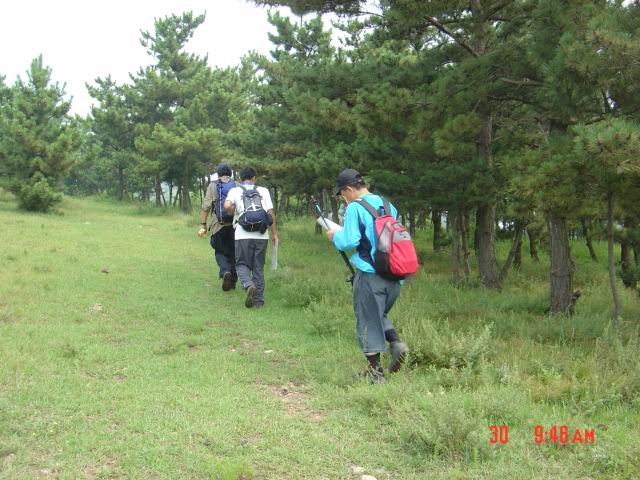 沿着方向先走到了15点,我要求休息一下,因为我有些晕,山爬的太急,而我一周前的感冒还没好,只一个鼻孔喘气儿,太难受了,在那儿耽搁了一些时间,又开始上路了,经ALIAN提醒,我把风油精抹在鼻子上,居然能喘气儿了,嘿嘿,真感谢ALIAN。