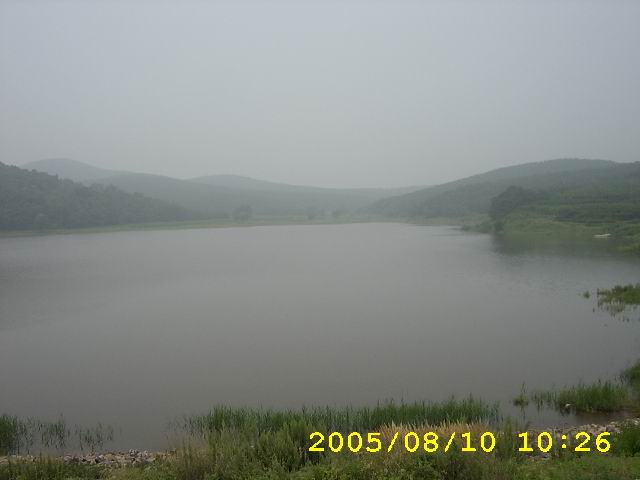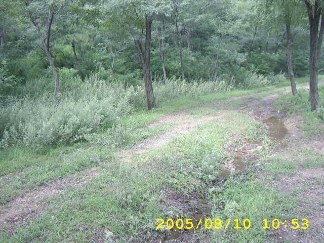 8月10日,难得的一天休息。我没带地图,带着模糊的记忆出发了。早八点我身着短裤凉鞋,坐上了经旅顺北路的大客车。一个多小时后,在水师营下车,徒步两公里的公路后,走到有记亿的土路上。有过了一会儿,来到寺沟水库大坝上,水位明显升高了。我选择了比赛时从水库的北面先到大本营然后到大顶山。没想到水库里的水已经淹没水库北侧的路,我在玉米地的边缘一路穿行,由于装备有限,用时近半个小时才到曾经做过大本营的地方。我停留了两分钟,没有任何痕迹表明我们曾在这里玩过,只有远处电线杆上的数字喷漆是那么熟悉!