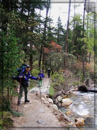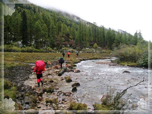 穿越毕棚沟 在上海子接待站被所谓的景区管理人员纠缠,非要我们交每人10元的管理费,说是为了收拾垃圾的。自觉我们不会留下垃圾,坚决地拒绝交费。不过后来看到有驴真的很不自觉地乱丢垃圾,感觉的确该收。