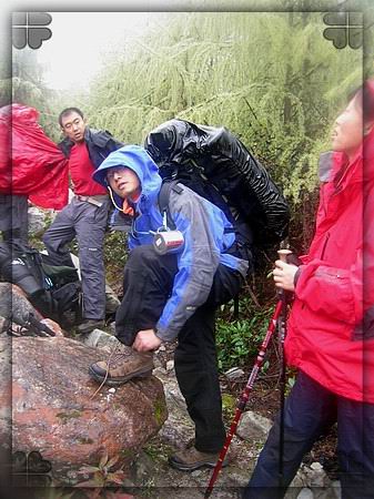在大峰顶,偶的相机彻底没电了,从老九那里借了电池才拍了纪念性的pp。所以最后一天下撤的时候偶干脆就把相机装到了包里,一张也没拍了。