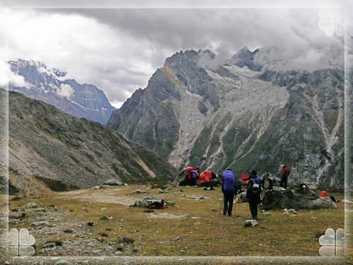 这些背夫十分地顽固,也是知道行情好不愁没活儿干,12对5争吵了半个多小时,一干人等已经筋疲力尽觉得很不值得在这里浪费那么多时间,最后以6个背夫每人一个25kg左右的包一天100元/人,第二天早起从独木桥营地背包到长坪沟侧的大平台,额外还得捎带了6个人200块的来回包车费的价钱最后谈妥,我们才得以继续赶路。