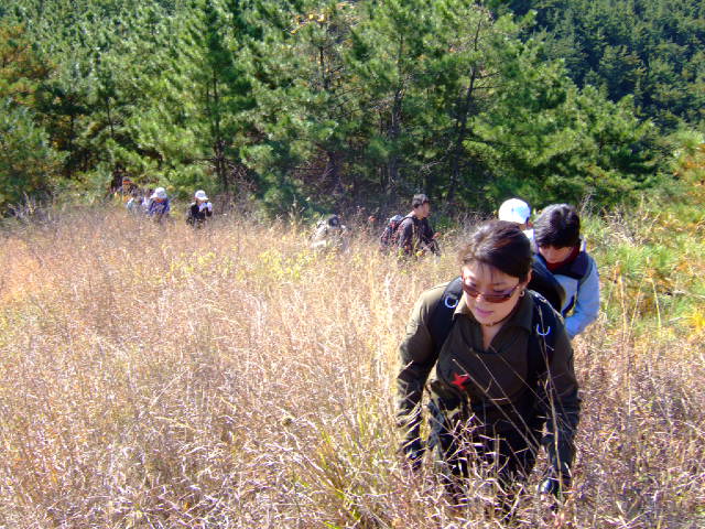 2005年10月30日9:00 从龙王塘加油站西侧的山脚下上山,上山的小路很明显。在行进过程中山路时隐时现,要不断调整方向,约:11:45分到达观音像与横山寺之间的公路上。用时2小时45分。