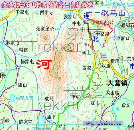 路线:活动接前日。11月5日从歇马山上来后,晚上露营时,就和ALIAN,淡蓝商量第二天的活动,一种方案,看大家有多少人愿意再上歇马山,然后轻装爬过断崖,完成南北穿越,