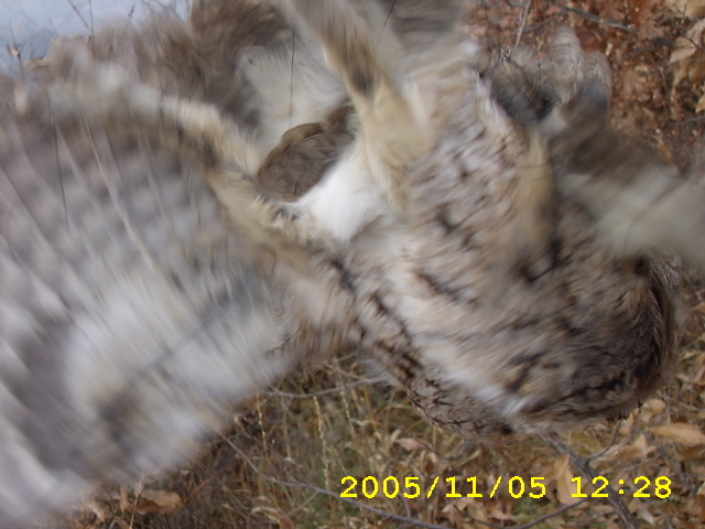 爬到山顶突见一只大网横在山脊上,网上挂着一只死鸟,死前一定有着极痛苦的挣扎,还有挂在网上和散落在地上鸟类的羽毛,这才恍然大悟原来鸟儿就这样被贪婪的人类网去了自由,网去了生命,在网的不远处还有石头堆砌用来猎鹰用掩体,我们愤恨不平,拆网、毁网、推倒石块。可是当到达另一山头之后又有一处网,网上除了四只死鸟外还有两只仍活着的猫头鹰,体形与鸽子一样大小,被网缠住翅膀,勒住脖子,它越是挣扎网就会缠的越紧,到了最后连挣扎的力气到没有了,等待被屠宰。为这两只尚有气息的猫头鹰我们停下脚步,把缠绕在它们身上的网一一割断,起初对于我们的到来充满敌意,我不敢看它的眼睛,有一股红色燃烧的火焰,仿佛在拷问人类为何侵占它们的家园?还网去它们的生命?把它们放在空地离去时,虽然敌意减少许多,但仍然处于戒备状态,面对此时此景大家纷纷用相机记录这两只被解救下的生灵及鸟儿死去前最后挣扎的姿态,这是对人类无言的控诉。也许若干年后某一天,当我们抬头仰望寂寞的蓝天时,当孩子们寻问那些鸟儿去向时,历史的相册再次翻阅,我会重新陷入时间隧道,不知那些偷猎者是否会卷入对昨日追悔之中?
