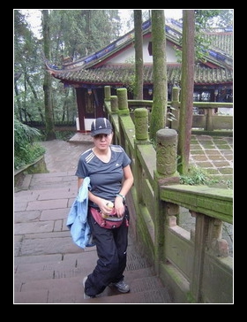 离开青城山已经快到5点了,雨还在下,周围都是雾蒙蒙的一片。这种天气下去都江堰估计什么也看不到,但大家还是不死心,于是打车前往都江堰。我们选择在盘山公路上俯瞰都江堰,结果不出所料,都江堰也被云雾笼罩,啥也看不见。在盘山路上还发生了一场地震,当时俺坐在车里,懒得下车。就在这时,忽然车外咕咚一声巨响,霎那间车动山摇,不好地震了!于是俺赶紧打开车门,想要下车逃生,突然发现闹闹躺在车门外。咦!好像不震了,看着闹闹痛苦的呻吟,才明白原来是她摔了一跤,唉!真是的,害得我虚惊一场。没想到地震的余波很快传回了后方,大家嘘寒问暖的给闹闹安慰,完全忽略了受惊吓的我和奔跑