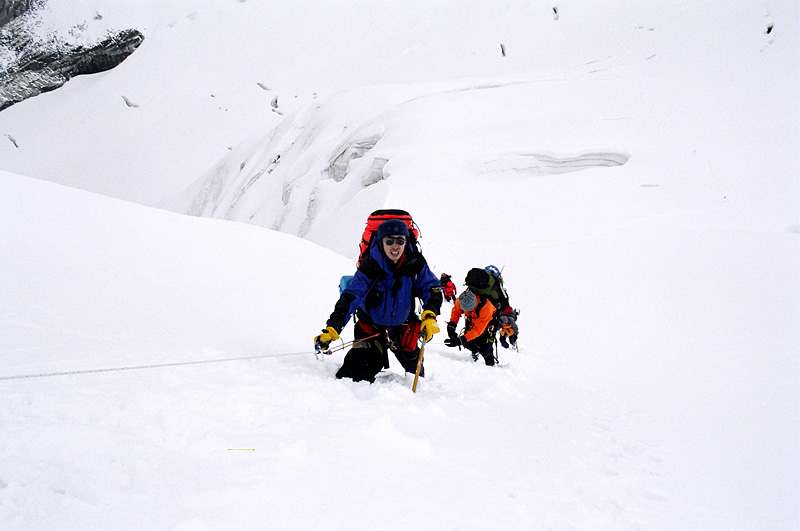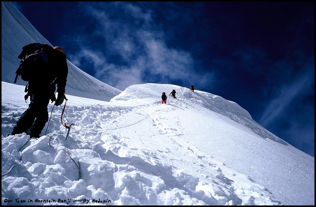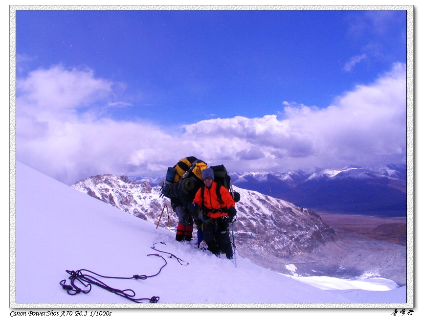 你的片子真好看,我也发几个,04年半脊峰的,自组队8人,分两队,7人成功登顶并安全下撤。
