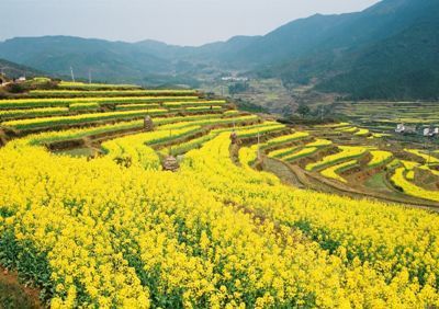 庆源村外的油菜花一点也不逊色于江岭的,而且没有了眩目的烈日,更显出一分清秀妩媚。