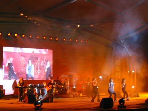 我们是不到五点到的,刚好美国的一个五姐妹歌舞组合的演出还没有结束,最后竟然是观众总动员一起唱了S.H.E的Super Star。