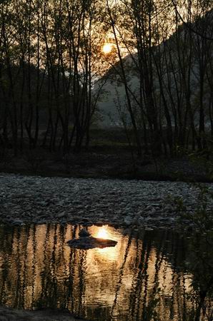 光着脚,坐在帐篷外的一角发呆。小河依然不知疲倦的流淌着,在太阳洒落河面时,柔和的光影幻成跳跃的音符。河岸一堆干枯树枝上晾晒着女人们洗过的衣物。小鸟在枝头偶尔的鸣叫,地上的蚂蚁在洞穴中进进出出的忙碌着,间或也有一只两只爬到我的腿上散步。阳光照着的背温暖了,并迅速传遍全身,心也温暖了。