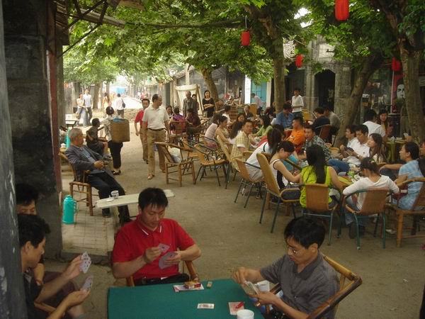 龙堂青年旅馆一直成为在成都的落脚处,地处宽巷子。经常有外国人登记住宿。估计lonely planet一书可能有推荐。不过今年有些变化,巷子两头因施工已经被堵上,仅容自行车大小的空间可通过,原以为龙堂不再营业,没想到并不影响,并且巷子里做生意的人不少。摆满了藤椅吃茶聊天打麻将的人挺多,不同于去年的景致。据门口的诗人宋仲文讲,强迁的事已经捅到建设部了,最终决定不拆迁,并恢复原貌,所以巷子内的生意满兴隆的。