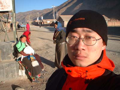早上的阳光格外的刺眼,路边简陋的餐馆冒着淡淡的轻烟,前后都是灰黄的土路,没有目标的等,从会说汉语的藏民那知道,今天会有去诺尔盖的班车,只是要等很久。看看周围的藏民,懵懂的眼神,色彩斑斓的服饰,透着原始的质朴与现代的无奈。