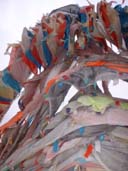 车是在邻近中午的时候到的,上了车,又开始了漫长的旅途。车在群山中穿行,一路的颠簸,缓慢的爬坡,没有太多的思想,只是细细的体会着劳顿的快慰与彻底。车厢中没有太多的声音,一阵风吹过,飘来了几张风马,抬头看看,原来有个藏民在向车外抛撒风马,他在祈福平安,因为我们的车正行使在垂直落差几百米的盘山路上,180度的拐弯,窄窄的车道,急陡的山崖,手心出汗,心跳加速。会车的时候都害怕庞大的卡车会一个不小心侧翻过来压倒我们的车。错觉,希望这样的旅途快些结束。