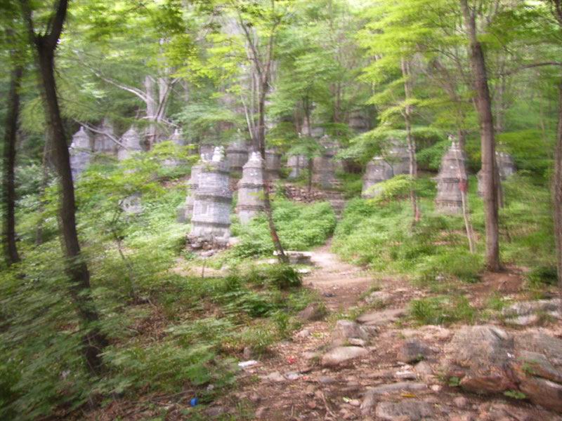 这时老师太与几位居士也安慰让我不要过意不去,没有事。但这事现在想起来我还是感觉特过意不去,这里友情提示各们看官,以后可要小心不要像我这样冒失啊!!过了一会儿那位问我话的居士出来叫岩羊,说师夫要见见他。看来岩羊的佛缘比我深啊,我是硬闯他是被招见的,比我层次高啊。岩羊进去了一会儿出来后,慧圆师夫也给他写了几句话让居士带出来给他,写的什么当时看过,现在忘了。后与师太谈起闭观的事,师太说与她同住的居士小刘去年闭谷不吃不喝了四五十天(具体多少记不清了)呢,真是太神了!!收拾完东西我们决定再上到垭口看看能否穿到水库那边去,老师太说她走过那路,送我们上山为我们指路。延着昨晚上山的路再次上山,老师太体力挺好的,一路上没有休息。到达垭口时遇见了爷三个,经交谈得知三人是从水库那边的村子过来挖人参的,水库的船坏了,他们是划着用汽车内胎自制的小船过来的,我们是不可能联系到水库的船到水库那边的村子的,从山上走太远了得走一天吧。好吧,只能原路返回原计划从水库穿过去到步云山是不可能了,下山后时间够用的话就去孙家窝棚踩线去。我又在垭口拍了几张水库的片子,就开始吃饭了。下山第六次到龙潭寺,这次没做停留和师夫打了招呼后就急忙下山去了,好在昨天上山是走水路上来的,今天下山走的旱路和昨天没有多少重复的,但一路上的风景实在没法和水路相比了,一路也就没拍片。两天来没有怎么被太阳晒着的我们,猛的被太阳这么一晒都受不了,表现最强烈的就是我,最大的愿望就想喝口冰的百事可乐,一路嘟嘟囔囔:下山第一件事就是买瓶可乐喝,放~魂这时也开始有意挑逗我,给我讲:拿起一瓶冰得的瓶上粘满着水珠的百事可乐喝一口,可乐咕噜滑过喉咙......想想都要疯了,一瓶冰百事可乐就是我全部的愿望......就这样在半疯中我们下了山,看到了山门我健步如飞地奔了过去,还不知残酷的事实在等着我,除了山区小厂出的那种劣质饮料外没有其他任何饮料......还好我比较抗造,没有被残这酷的事实击倒。为了我的愿望,为了那口冰的百事可乐我们继续前行。进村子找到了唯一的小卖店再次令我失望。
