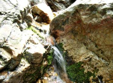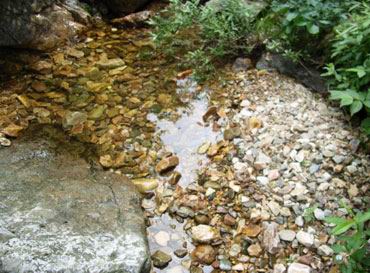 下车、给钱、进山!上山有旱路(常规路线有人工修饰)、水路(溯溪而上非常规路线)可选,我们延水路上山前,小做停留,补充食物,更换衣服,脱掉狗太死鞋,换上岩羊一再订嘱我们带上的军胶。路上景色宜人,深潭、小瀑布美不胜数!由于水流的冲刷使石头变得十分圆滑加之上面长满了苔藓,十分难走一不小心就会滑到,我当时特怕相机粘上水,所以这段几乎没有拍片。虽然此段走得我心惊胆战,但是确是两天行程中最有意思的一段路程。