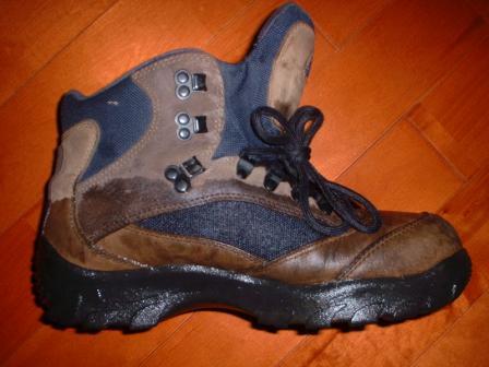 这双鞋之所以最后总分给了3分,其原因就在于右脚的透水。除此之外,在一年的使用中,表现还是可以的,由于不是v底,所以脚感不是那么硬,但此鞋的毛病在于鞋的前部空间较小,对于脚前部宽的人来说是个痛苦。其次,这款鞋采用的不是橡胶包头,使用2层皮,由此导致在行走的时侯在2层皮的部位的褶皱比较严重,会压迫脚趾,而且没有橡胶包头,他的防踢效果不是很好。