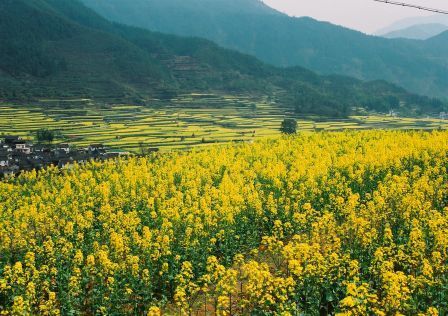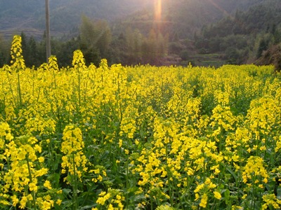 庆源村外的油菜花一点也不逊色于江岭的,而且没有了眩目的烈日,更显出一分清秀妩媚。