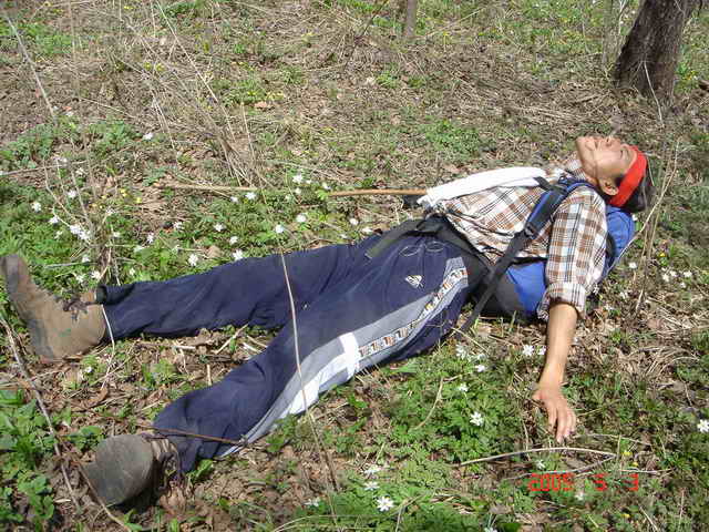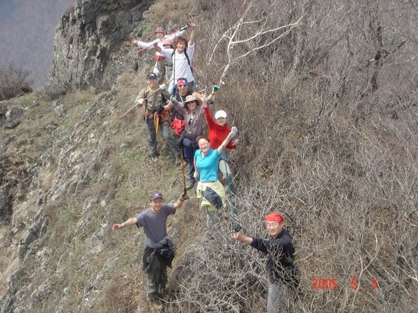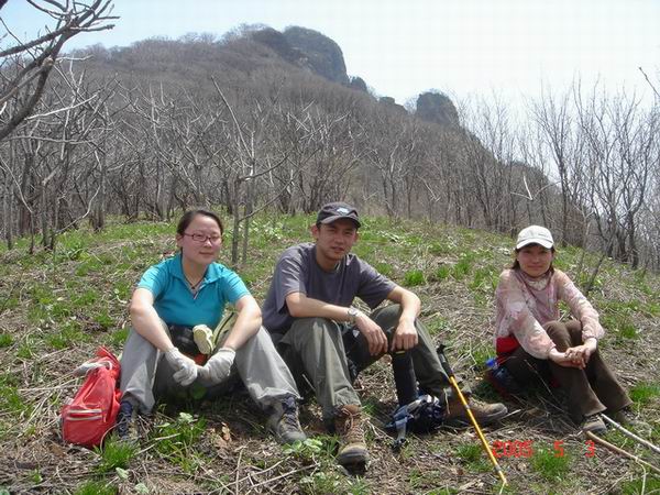 飞鸟发了个帖子,看到,心动。一群臭味相投的人,一个陌生的地方,一些未知的风景,莫名的恐惧,也许会突然出现的危险。不要熙熙攘攘的人群,不要舒适和安逸,不要纷繁的思绪,只想有个可以放飞自己的假日。 就这样,出发吧。 五月一日,起得很早,匆匆的上网想查看天气预报,却意外的发现了俊风在凌晨3点多的时候因为兴奋不已而发的帖子,不禁莞尔。有点手忙脚乱的收拾好东西,看着一旁担心不已的老爸老妈,我说,放心吧,我每天都会打个电话。走出家门,我体会到什么叫拉风,基本上是人就在看我了,我只能到处转头,好看不见别人的注视。 到了汽车站,果然和飞鸟说的一样,人很多很乱,找了个位置,等待。眼看着周围的排队的人越来越多,我终于忍不住打了电话,飞鸟他们终于现身了,大家的怪异装扮着实有点吸引眼球,好在现在我不再孤单了,一片混乱中,我们上了车。一路上缺善可陈,老板娘为了趁着黄金周多赚点银子,不顾乘客的安危不停的往车上加人,到后来连站着都没有地方了,行使的路线被拉长,速度被放慢。飞鸟的第一个计划被打乱,我们不太可能吃到凤城的午餐了。在遥远的凤城,孤独的macaulay在默默地苦苦地等待着大家,从9点到10点到11点到12点到13点,当我在飞鸟的授意下给macaulay发消息说我们还有一个小时到时,我知道,飞鸟又在骗人了。14:30我们经过了8个小时的颠簸,终于下了车,几个身强力壮之士从车厢中卸下了大家的包,我哭笑不得的看着布丁借给我的画着大花脸的登山包,暗自庆幸还好套了防雨罩。
