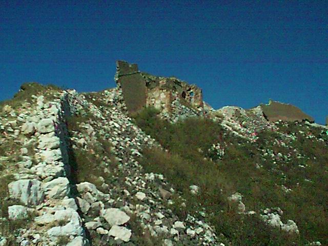 登上城楼的2层!望去,败落的城墙!残损的敌楼!