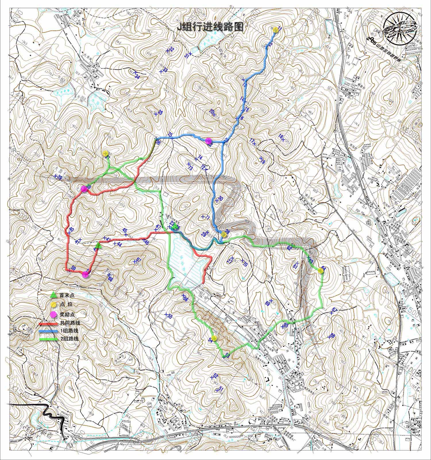 按照任务书(38/58/28/37/42/22/11/54/64/24/),计划线路是:共同路线42-58-38-37-22,22点分组,1组11-28-24,2组64-54-24;计划线路应该是一条合理的线路,基本都是山脊、山谷和机耕路,完成所有点及奖励点,没有重复线路。