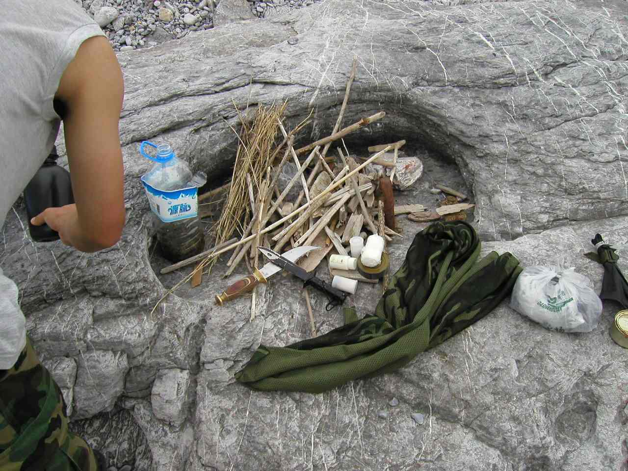 野外生存活动应广大同好的要求终于在这周成行了,由于周日酷兵营有战斗任务临时退出,两名队员因伤,一名队员因事不能参加,所以本次活动只有我和大胖两名队员.本次活动演练了山地和林地穿越,伪装,野外生火(不是用打火机等火具,使用了某种化学方法),野炊,海边取食,烤肉(不使用烧烤用具)等科目.