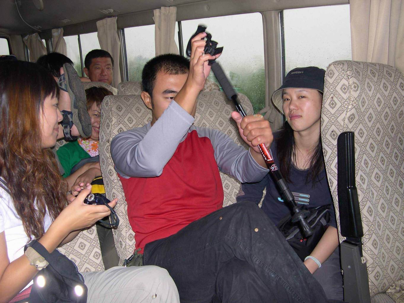 一路车上很是热闹,因为腐败的队伍中也几乎都是认识的朋友,即使海涵小区的几位,也都是在定向赛中露过脸的,其中蜗牛大哥还给咱帮了不少忙。乌云来之又去,座位上最幸福跟活跃的怕就是这位似乎害怕小虫虫的帅哥了。