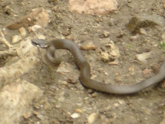 由行者带路,13,我,老赵大哥,叶绿素和维生素一行6人就出发去爬露营地后面的山。下过雨,山路很滑,还好山不是很高。刚上路,行者发现了一条小蛇,好可爱哦。只有一根筷子的长短,竟然毫不畏惧,张着大嘴想咬行者拿着的小树枝。很可惜,因为去年步云山的关系,我很害怕蛇宝宝的妈妈在附近,不敢靠近拍照,拍出来的pp也有点虚:(可真的是很喜欢这条蛇宝宝,只是还没有勇气带它一起回家当宠物。。