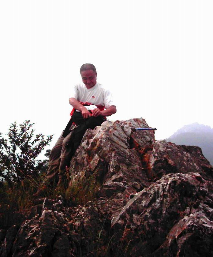 果然情况正如我所料,见到林硒和林硒+1是二位PLMM,心中窃喜,以为总算有比我体力弱的驴友同行,可谁知8点出发从双台沟开始上山后,二位MM一马当先走在了队伍的前列,一路强行军来到了城山,按照bear的节奏,我们爬45分钟的山休息5分钟,这种强度我完全适应不了,二个小时后,我已经大汗淋漓,几乎虚脱,期间要经过一段悬崖,需要攀岩下行,以后穿越的驴友们要特别注意安全。11点我们到达城山的主峰,这时bear护送二位MM从主峰顺金龙寺森林公园的台阶按计划下撤,文哥、叶绿素和我继续前行,在穿越过N道山峰后,12点我们从城山山脉下撤到一个小村庄进行半小时的休整午餐并补充水源。之后我们一行三人继续向鞍子山进发。在穿过了几道山脉后,我的左腿隐隐作痛,体力也有些透支,不巧的是我的登山鞋也不适时宜地脱帮掉底,叶绿素晚上也有事要办,经过大家商议,决定从岔鞍子下撤,下午330分下撤到南岔村结束了本次穿越活动。