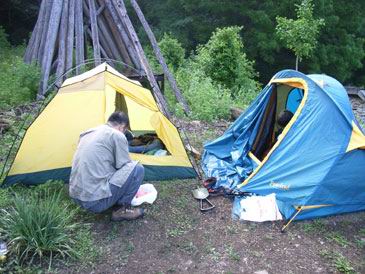 :我真不知道啊,知道一定不会进的(这时想起昨晚取热水的情景,我跟着这位居士走到这屋门口他没让我进,让我在外边等着,当时心里还合计啊,怎么不让进呢,可能是屋里的人睡了,我带着头灯影响睡觉吧,也没多想,他也没说原因,原来是屋里有人闭观啊,虽然没有怪罪我,但我还很过意不去的)