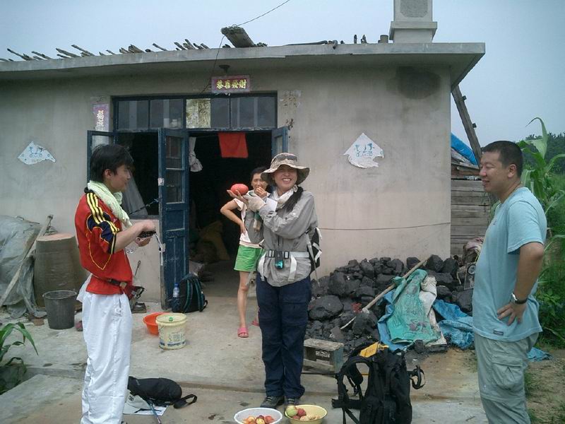 吃饱喝足了,临走大嫂硬塞给了我们几个桃子,我们也把包里的食物留了下来,背着实在太沉,另外吃人家东西也不好意思了。继续朝着下一个目标行进,肚子里有了食儿,大家自然脚步也轻快了许多,一路上哼着小曲儿,回味着西红柿,桃子,西瓜的甜蜜味道,周身环绕着大大小小的飞虫FANS,我们好幸福!!