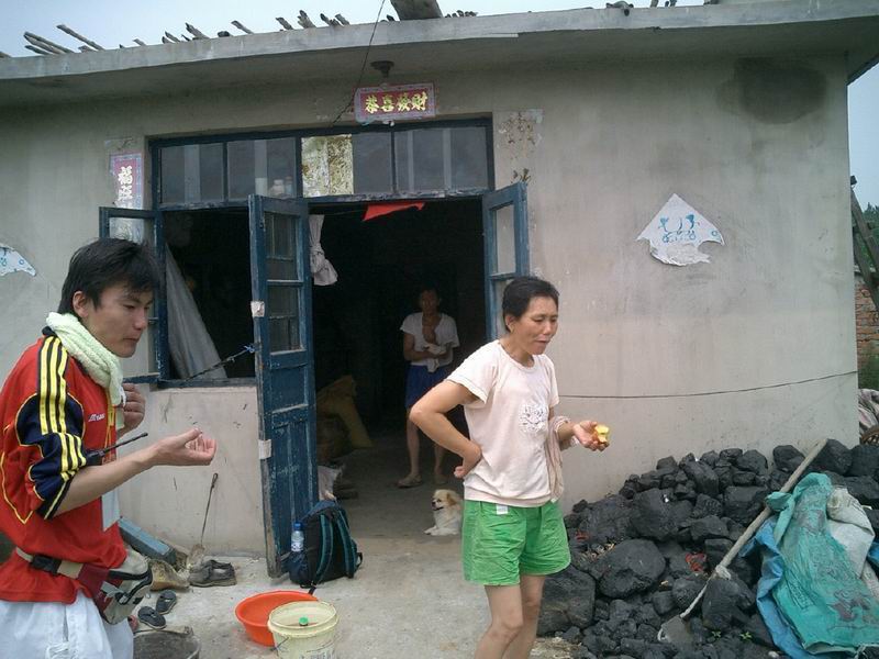 找到了这个点,我们决定休息一下,往前走,居然看到了一个农舍,我们欢叫着跑了过去,很想找点儿水洗洗脸,走近了一看,原来是一个养鸡房,厚道的农家大哥大嫂殷勤的招呼着我们,拿出了自家种的西红柿,桃子,西瓜。