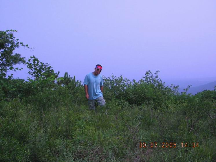 沿着方向先走到了15点,我要求休息一下,因为我有些晕,山爬的太急,而我一周前的感冒还没好,只一个鼻孔喘气儿,太难受了,在那儿耽搁了一些时间,又开始上路了,经ALIAN提醒,我把风油精抹在鼻子上,居然能喘气儿了,嘿嘿,真感谢ALIAN。