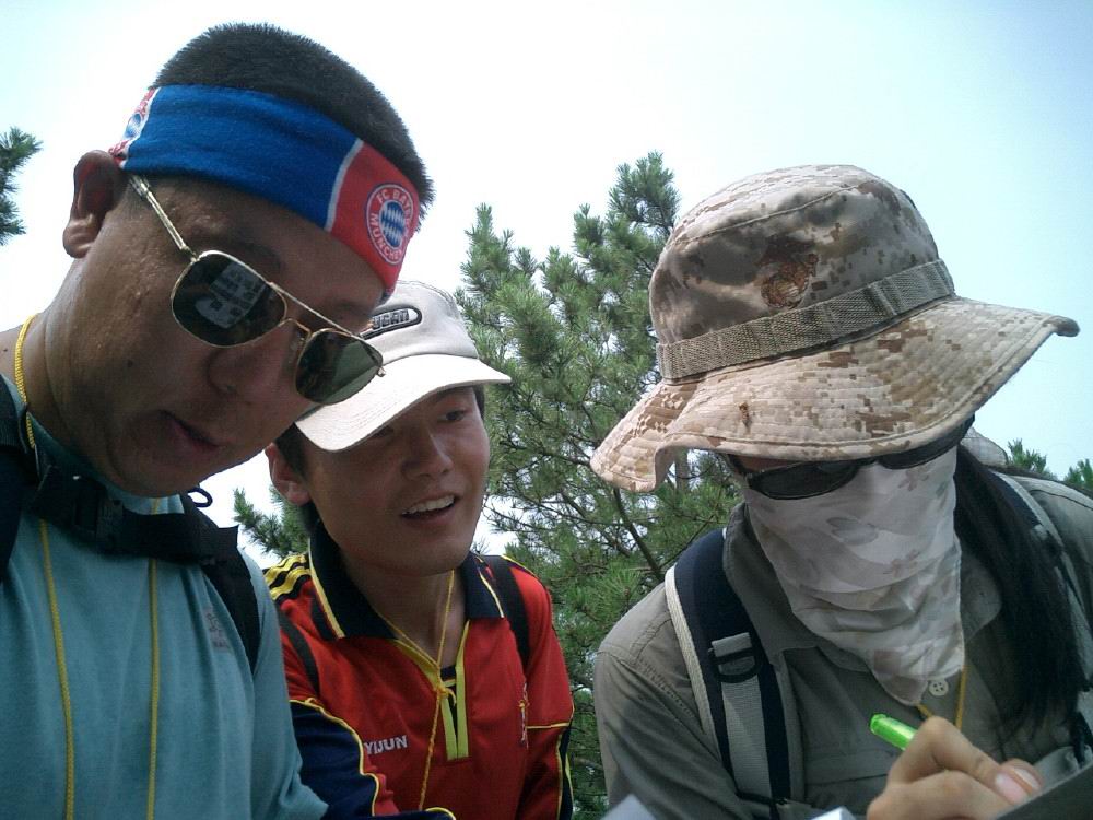 我们的队长ALIAN和大家仔细研究了一下,决定不分组,先找离我们最远的13点,意见很快的统一了,这次的合作,四个人相当的默契,这也是一个意外的惊喜。ALIAN,ZIZHAN和macaulay三个人在仔细的研究图,我左拍右照,左顾右看,俨然一个被领去玩耍的孩子。
