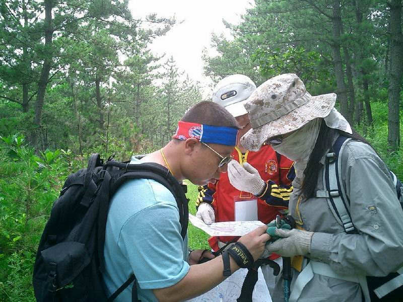 走在寻找34点的路上,我好像一切都恢复了,ALIAN和ZIZHAN在仔细的研究着方向,任务书上对34点的描述有点问题,让我们多绕了半个多小时的路程,本来已经确认了地点,但是看了任务书之后,又白走了一段冤枉路,而我们的队友macaulay,也恰恰在这个地方第一次受伤崴了脚,他不小心踩到了一个坑里,好在第一次受伤不重,没有叫救援,上了些药,他又很快和我们一起上路了,也许如果我们叫救援是不是就没有第二次受伤了??