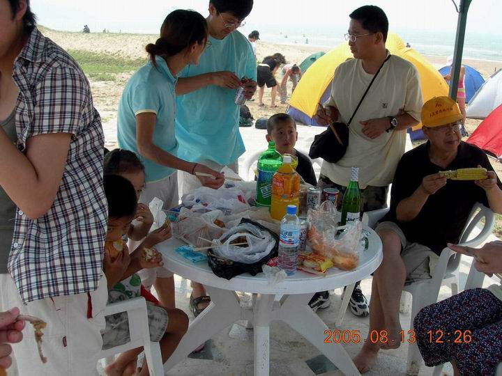 己过午时,还是赶紧吃点东西吧。大家摆出自己带的东西。嘻嘻,我只带了一袋老婆饼,蹭大家的了,特别是卓尔作的那些鸡翅和鸡脖子,色香味俱全,当时只顾着吃了,没留下个记念
