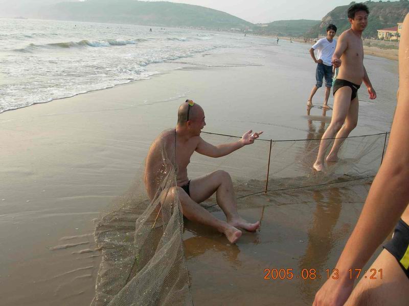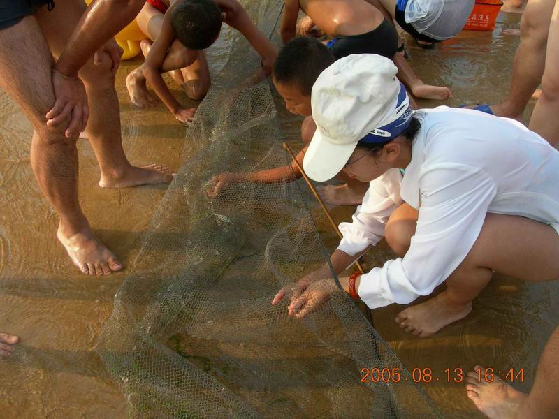 一夜无语,反正睡得蛮好。第二天早晨下了点小雨,大家就急着收帐篷了。几个不甘寂寞哥们又借来鱼网施起了鱼,这回效率比第一天高多了,哈哈,看图吧。