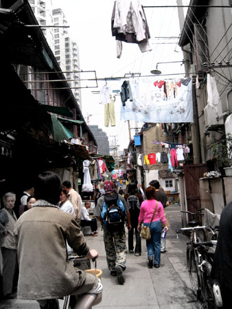 这是许昌路上的一个里弄。看上去有点意思,进去了一下感觉没什么特殊的就出来了。走了几步有个骑自行车的女人在后面告诉我们那里面其实很有看头的,有11种不同样式的建筑。于是我们又折返回去,进去转了两圈没看出个究竟来。遗憾没有抓到免费导游。