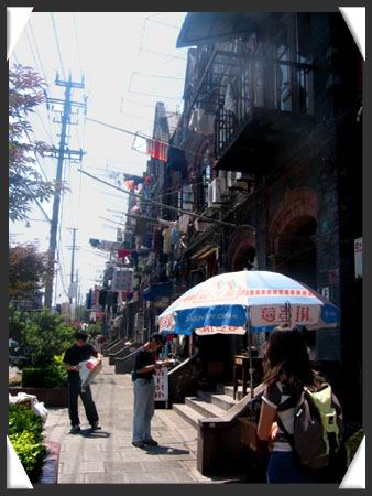 这里的看点应该还是那些肆无忌惮伸向街道,伸向你的头顶的“万国旗”,看我好奇地拍片子,同伴戏说我是在进行上海老街内衣采风